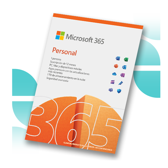 Suscripción para las aplicaciones de Microsoft 365: Word, Excel, PowerPoint, Outlook, OneNote y Microsoft Teams. Además ofrece 1TB de almacenamiento en la nube.